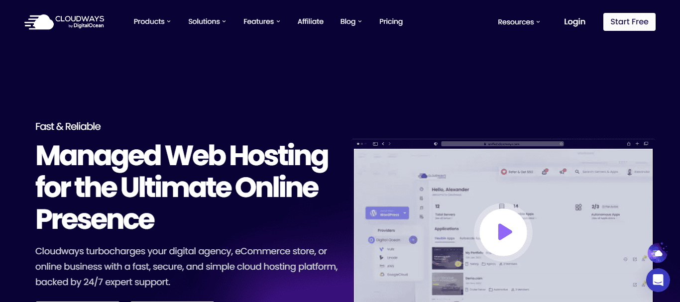 Cloudways offers managed cloud hosting that combines performance, flexibility, and ease of use. Built for developers, agencies, and ecommerce businesses, it provides access to top cloud infrastructure providers without the complexity.
